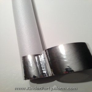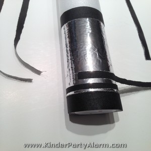 Am Anfang umwickelt ihr das untere Ende des Leucht Sticks mit Silbertape - ungefähr zweimal so breit wie eine Kinderhand. Tipp: Wenn ihr den Leucht Stick mit dem Aluminium Klebeband nur einfach umwickelt, dann schimmert das Licht durch. Wenn ihr doppelt umwickelt, dann schimmert kein Licht mehr durch. |