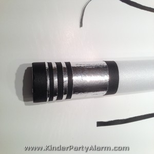 Bei diesem Lichtschwert ist noch ein scharzes Tape längs aufgeklebt und mit dem Silber Edding Streifen aufgemalt worden. |