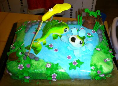 Er ist Angler und liebt Fische. Daher habe ich überlegt, ihm eine Fisch Torte zu machen …