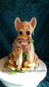 Und da wir uns sonst nichts schenken, meine Freundin ein großer Fan von meinen Torten ist und noch nie selber in den Genuss kam eine für sich selbst zu besitzen, habe ich gedacht, ich baue Harro, denn wenn der Fressen sieht, schaut der genau so aus seinem Fell.