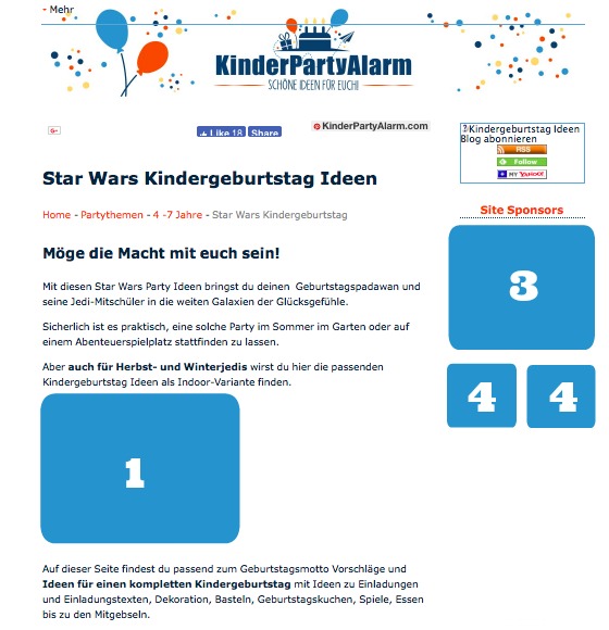 Auf KinderPartyAlarm.com gibt es 4 verschiedene Werbeflächen zu vermieten.