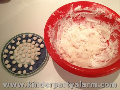 Dann formt ihr aus dem Fondant oder dem Rohmarzipan die Augen. Bei meinen Monstern habe ich Fondant verwendet, weil der so schön weiß ist. |