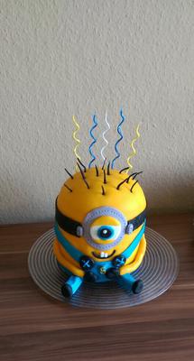 Mein Neffe wurde 5 Jahre alt und ist rieeeesiger Minions-Fan, und da wollte ich erst eine “normale“ runde Torte backen und kleine Minions oben drauf packen, … und dann sagte meine Tochter: “Mama, wieso machst du nicht einen Riesen-Minion?“