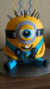 Ich habe erstmal den Fondant gelb gefärbt und den Kuchen damit überzogen und dann habe ich die einzelnen Teile auf Papier aufgemalt; Latzhose usw. Und dann den Fondant blau und schwarz eingefärbt und die Teile mit einem Messer ausgeschnitten. Als “Kleber“ habe ich leicht angeschmolzene Schokolade genommen.