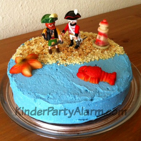 Es gibt auch bereits fertige Dekorationen für Piratenschiff Kuchen.