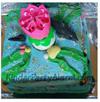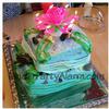 Das Rezept von dem Teig ist ein Biskuit. Der Unterteil ist Zucker reduziert während der obere Teil statt Zucker mit Honig gemacht ist. Die Creme ist eine Buttercreme. Überzogen ist er mit Fondant allerdings sehr dünn ausgerollt.